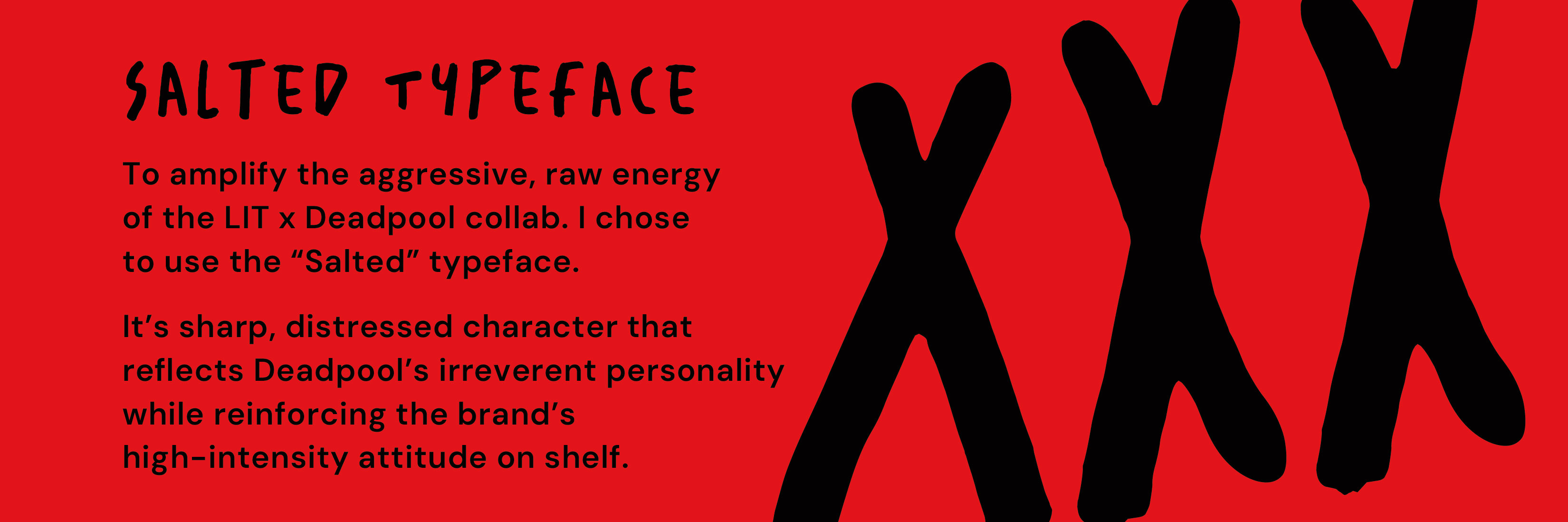 aesthetic with Deadpool’s bold, chaotic personality through aggressive typography, high-contrast